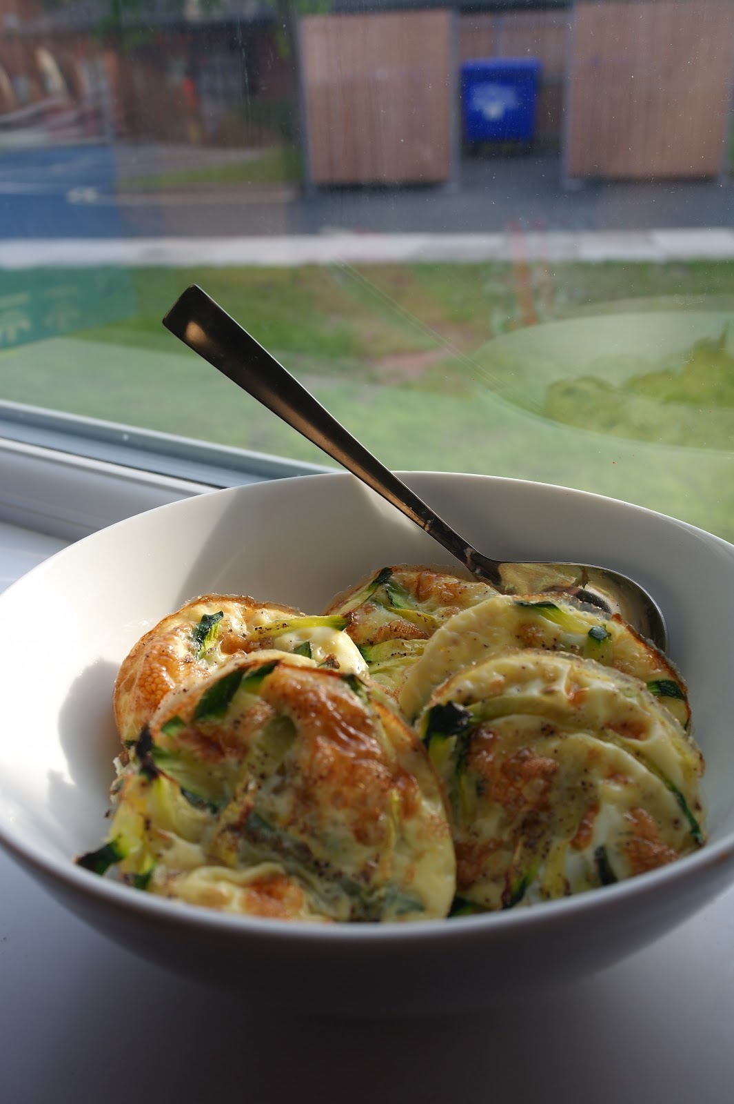 Zucchini jeon was playing in my head since the past few days. Only problem with me and savoury pancakes.. I usually end up making crapcakes because I suck with the pan. BUT! I am in good terms with the oven. Hehe..So I thought why don't I just put them in nice muffin moulds and bake the batter instead. But I left out the flour, so it was like baked zucchini eggs instead. Jam-packed with protein and fibre. Uhmm..Yum :)